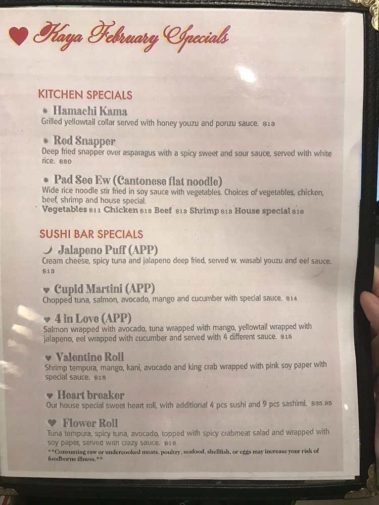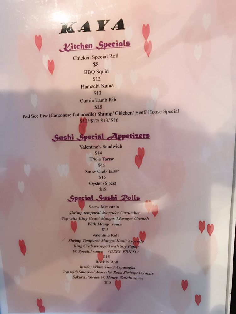 Introducing the menu at Kaya Asian Fusion Bar, located in Lodi, NJ, offers a diverse range of Asian cuisine with a modern twist. The restaurant boasts vegan and vegetarian options, making it a great choice for those with dietary preferences. With an intimate and trendy atmosphere, it's perfect for a casual lunch, dinner, or late-night meal. The menu includes sushi, Thai dishes, hibachi, noodles, cajun seafood, and more, showcasing the culinary expertise of the chefs. Customers rave about the fresh and delicious sushi, with highlights like the volcano roll and hand rolls. The attentive service and inviting decor add to the overall dining experience, making Kaya a standout choice for Asian fusion cuisine in the area.